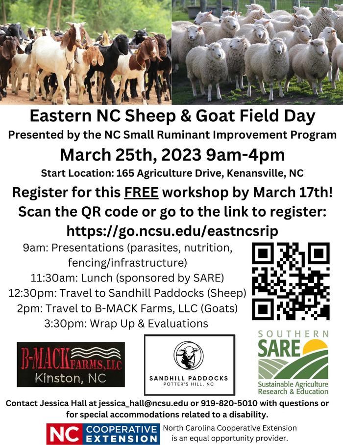 Interested in working with other small ruminant producers, livestock extension agents and specialists, and NC Department of Agriculture staff to improve the productivity of your flock and profitability of your operation? Sign up for a networking group today! This is a great opportunity to learn from others, ask questions, and develop solutions for challenges you are facing. As people sign up, we will work with you to form groups and help facilitate meetings and discussion. Sign up at the link below.go.ncsu.edu/